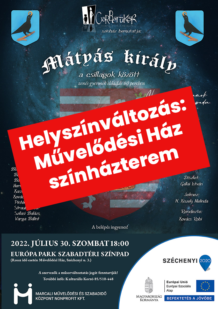 Tájékoztatjuk kedves közönségünket, hogy a július 30-i színházi előadás a szabadtéri színpad helyett a Művelődési Ház színháztermében kerül megrendezésre!