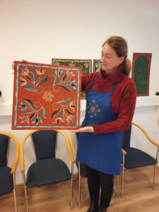 A bútorfestő szakkör legutóbbi alkalmán a Kórósi templomkazetták kaptak végső ecsetvonásokat. A résztvevők kontúrozták, árnyékolták a motívumokat, a keretezéshez pedig gyakorolták az íróbot használatát.