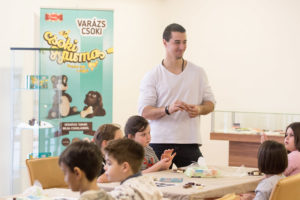 A Mesepark óvoda Méhecske csoportja próbálta ki csütörtökön délelőtt a csokigyurmázást a Kulturális Korzóban. A foglalkozás keretében rajzos videón megnézték, hogyan lesz a kakaóbabból csokoládé,