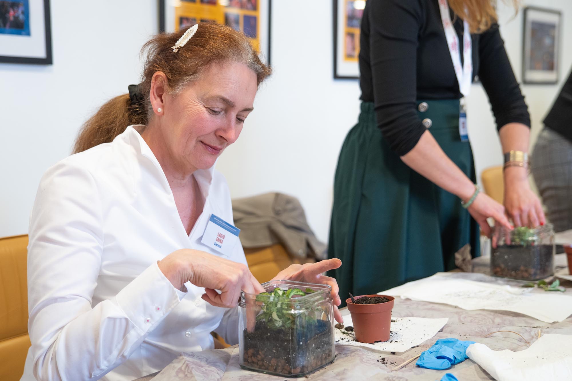 A nap zárásaként a szakembereket „Különben dühbe jövünk…” címmel stresszkezelő műhelymunka várta. Vizes Edina kertész a floráriumépítésbe vonta be az érdeklődőket.